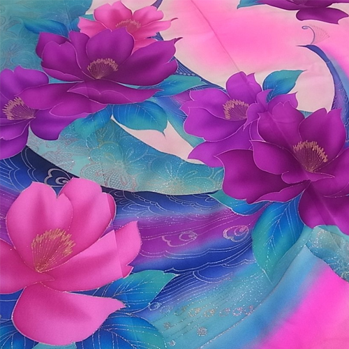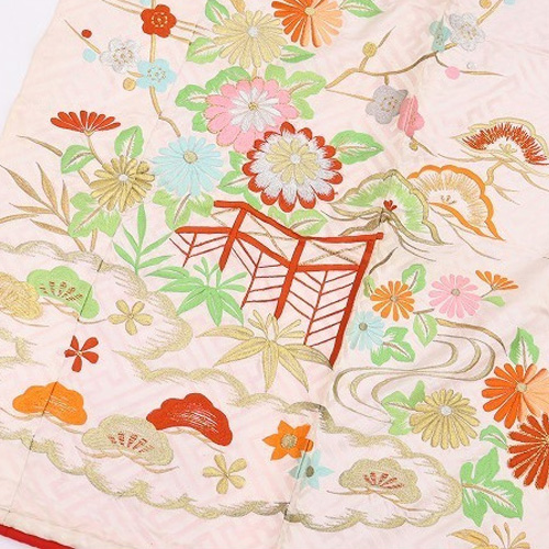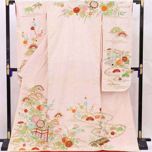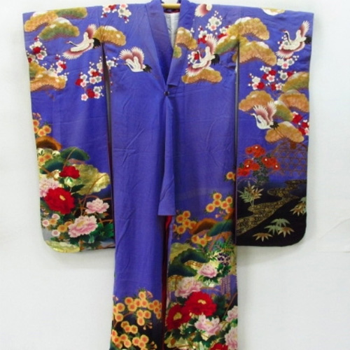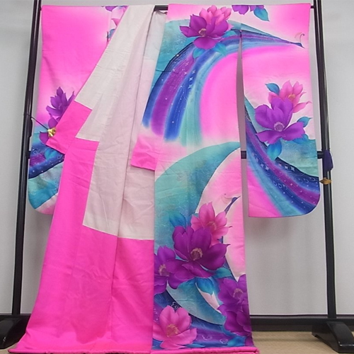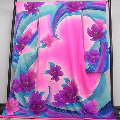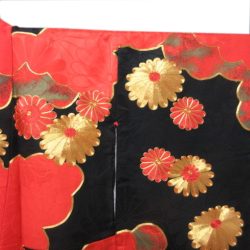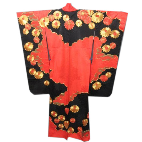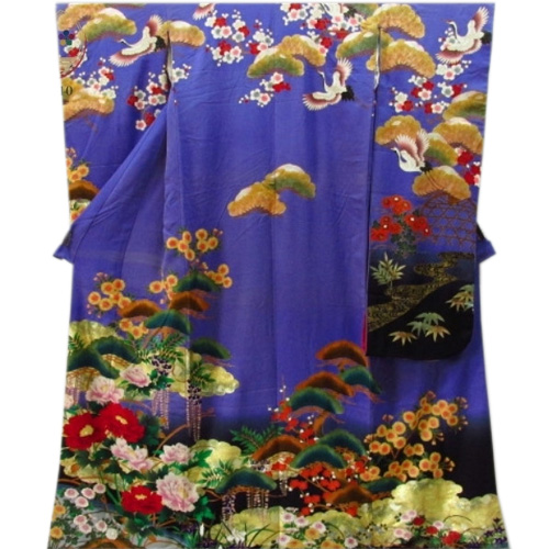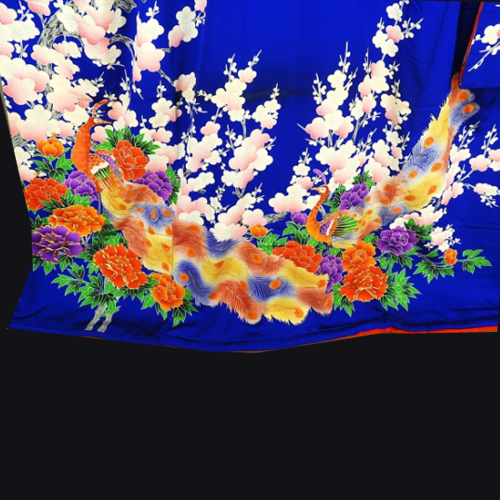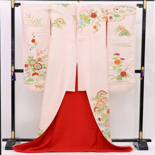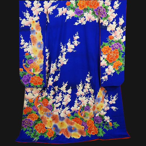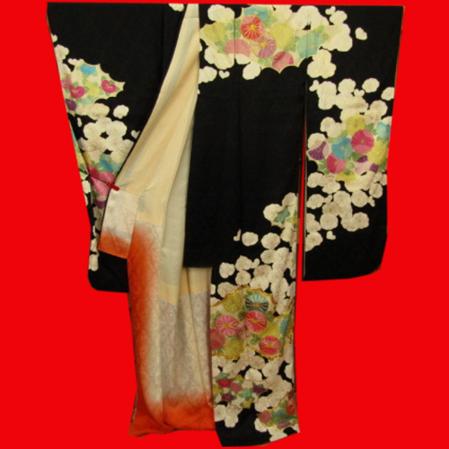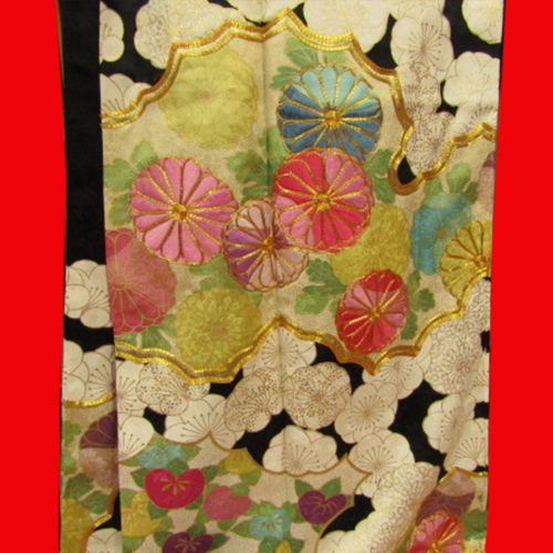 Hiki Furisode is a kimono that is worn by dragging the hem of a kimono without folding the edges, or a kimono with a long hem.  It was a bridal gown used in weddings in nineteenth century to the beginning of twentieth century, and it was more main than Uchikake. At that time, it wasn’t a pull, but it was said that he used to fold the furisode on a black background and wear it to the length.