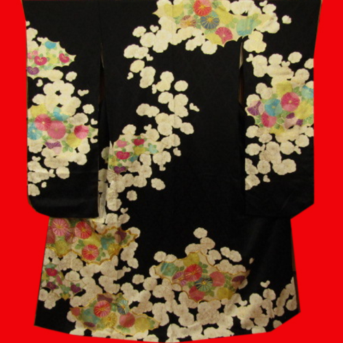 During the Edo period(1603-1867), black furisode was dressed as a maid working at the Shyogun palace. From the women of the merchants, the work of the maiden of the palace was a longing profession, so It is said that women started by imitating their wedding dress.